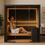 The Vantaa Eclipse Luxe Indoor Sauna is a masterclass in modern Scandinavian wellness design. Crafted with thermally treated alder and accented by deep espresso framing, it features a frameless glass entry and hidden LED backlighting for a dramatic, architectural ambiance. With a precision-engineered heater, this sauna combines sleek minimalism with traditional heat therapy, creating a serene retreat for your home.